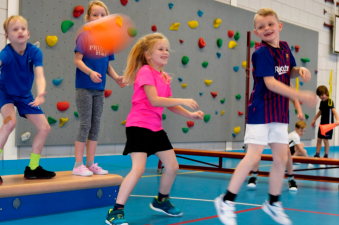 Bone-strengthening exercises for school-age children: Various exercises that require jumping and tumbling.